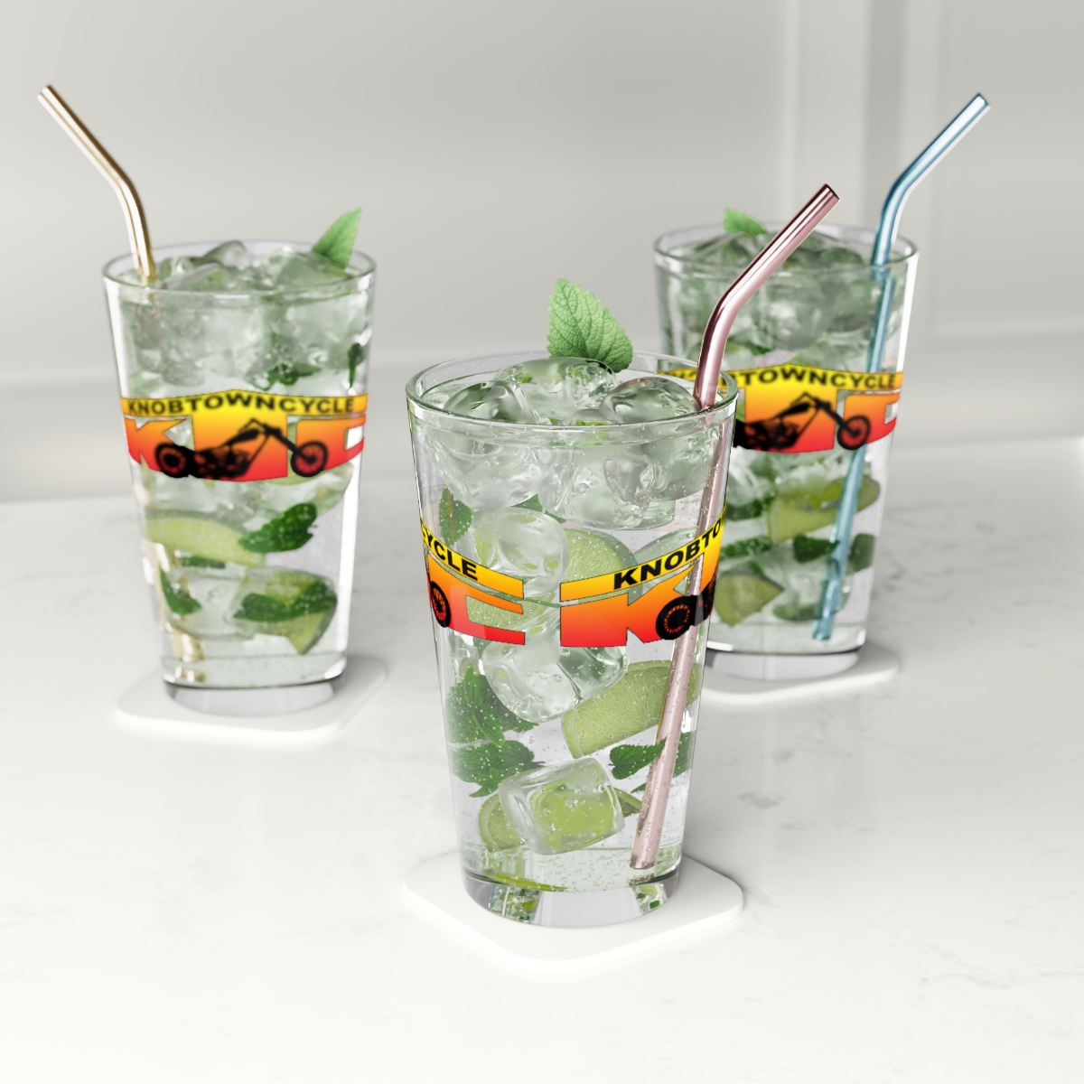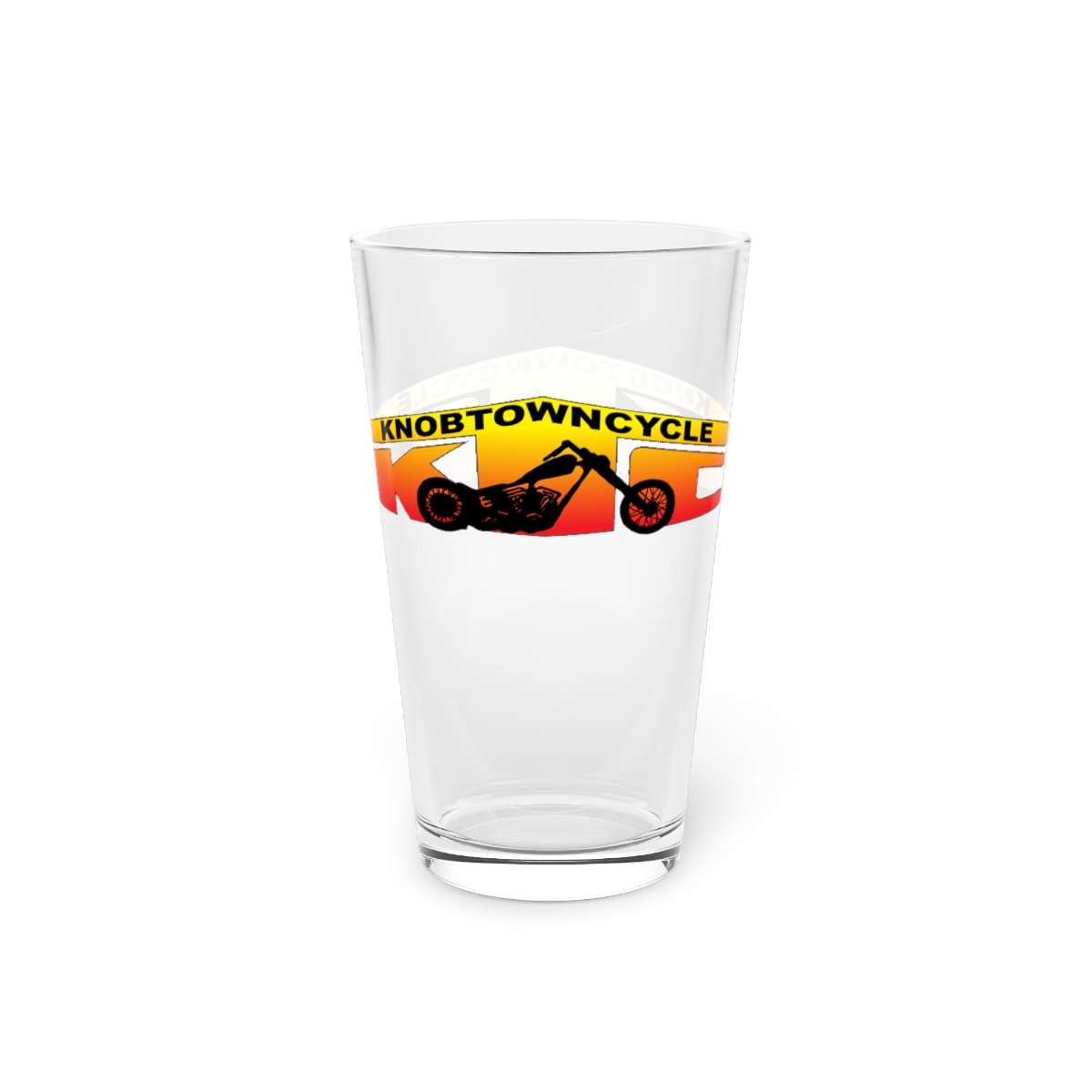 16oz Custom Printed Pint Glass – Personalized Design, Housewarming Gift – Clear Glass, BPA Free, Durable Construction – Knobtown Cycle Branded Swag