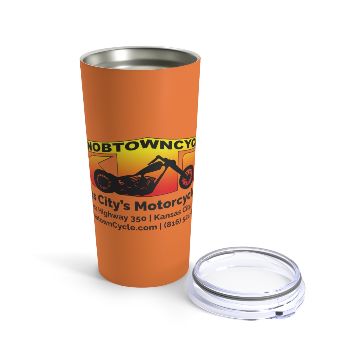 20oz Stainless Steel Orange Tumbler with Vacuum Insulation | Dishwasher Safe | Knobtown Cycle Branded Swag