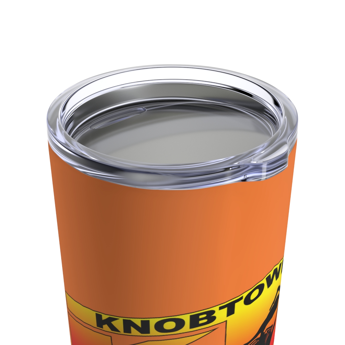 Stay hydrated on the go with our 20oz Orange Tumbler! This stainless steel tumbler features double-wall insulation to keep your drinks hot or cold, and is dishwasher safe for easy cleaning. Perfect for daily use, this tumbler is durable and stylish with a glossy finish. Ideal for Knobtown Cycle fans looking for branded swag.