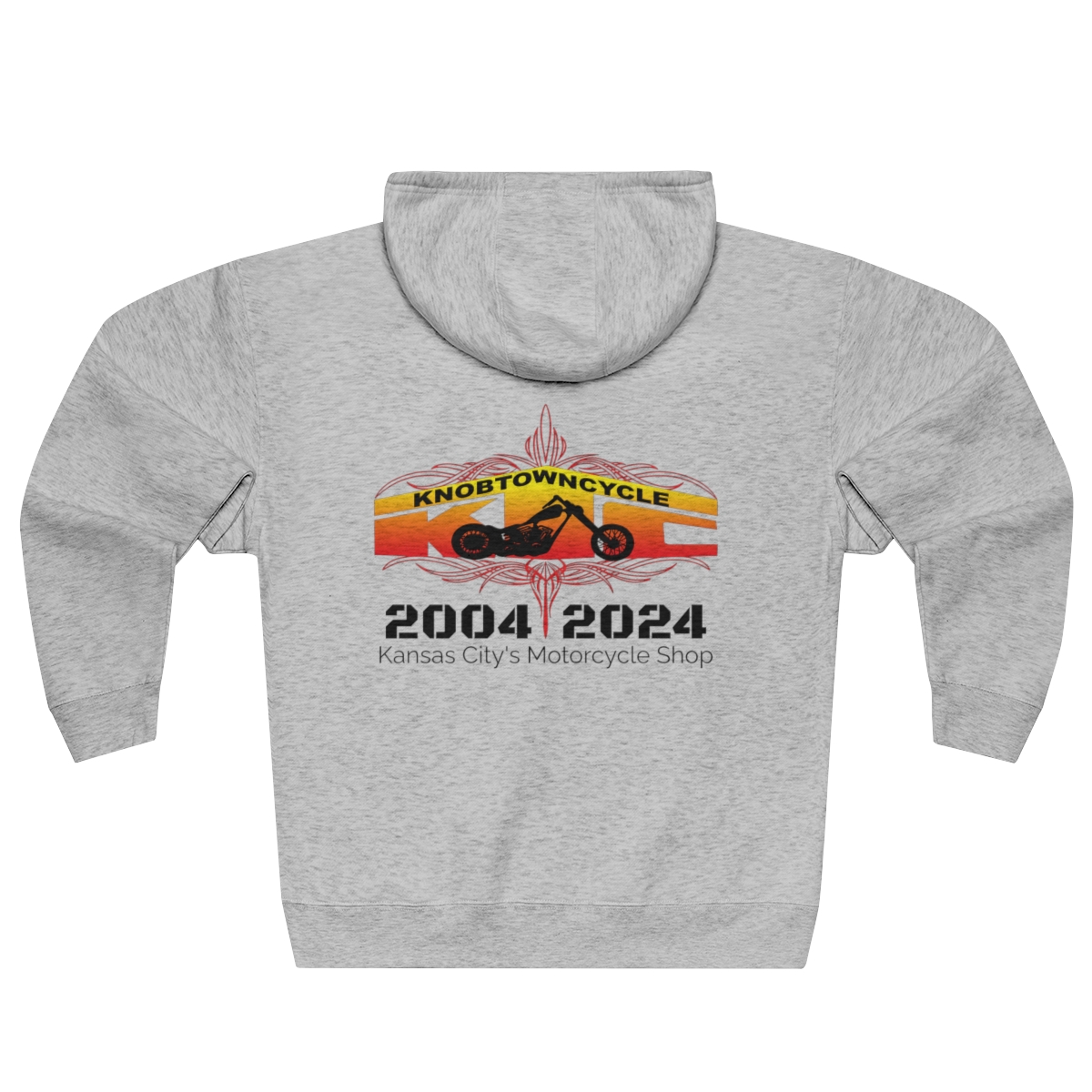 Shop the Unisex Zip Hoodie in Heather Grey from Knobtown Cycle Branded Swag. Made with 80%% combed, ring-spun cotton and 20%% polyester, this hoodie is soft, durable, and long-lasting. Available in sizes S-2XL, with a regular fit that runs true to size. Perfect for casual days or lounging at home, this hoodie features a zip closure for easy on and off. Embrace warmth in style with this versatile and comfortable hoodie.