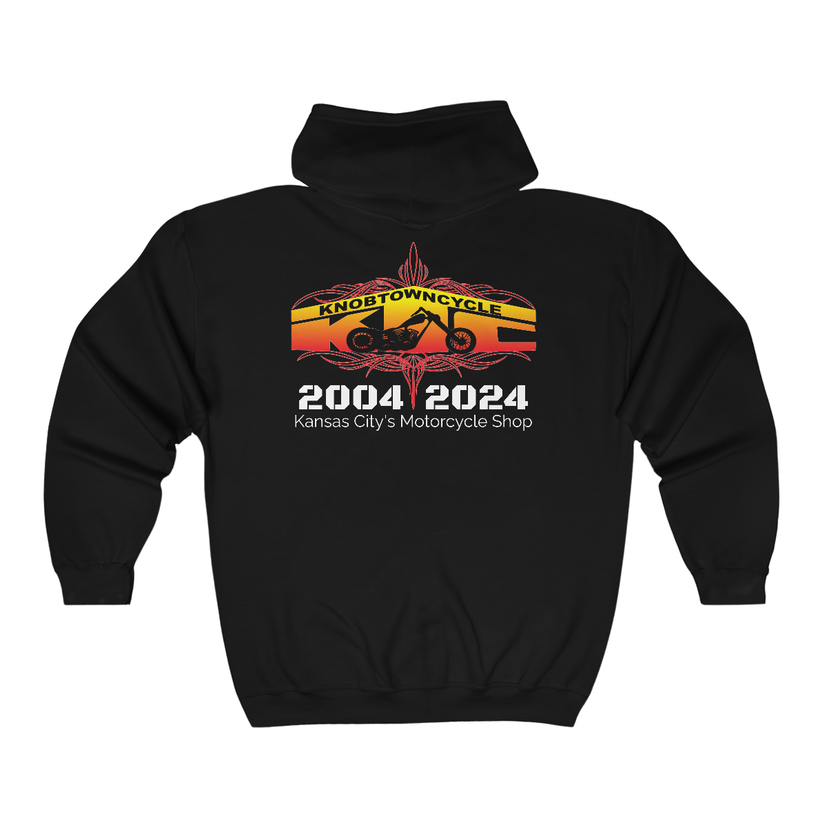 Shop the Unisex Heavy Blend™ Full Zip Hooded Sweatshirt in Black from Knobtown Cycle Branded Swag. Made with a blend of 50% cotton and 50% polyester, this hoodie offers comfort and style in all seasons. Available in sizes S-3XL, with a classic fit and full zip design for easy layering. Perfect for the gym, errands, or lounging at home. Classic black color with a touch of uniqueness.