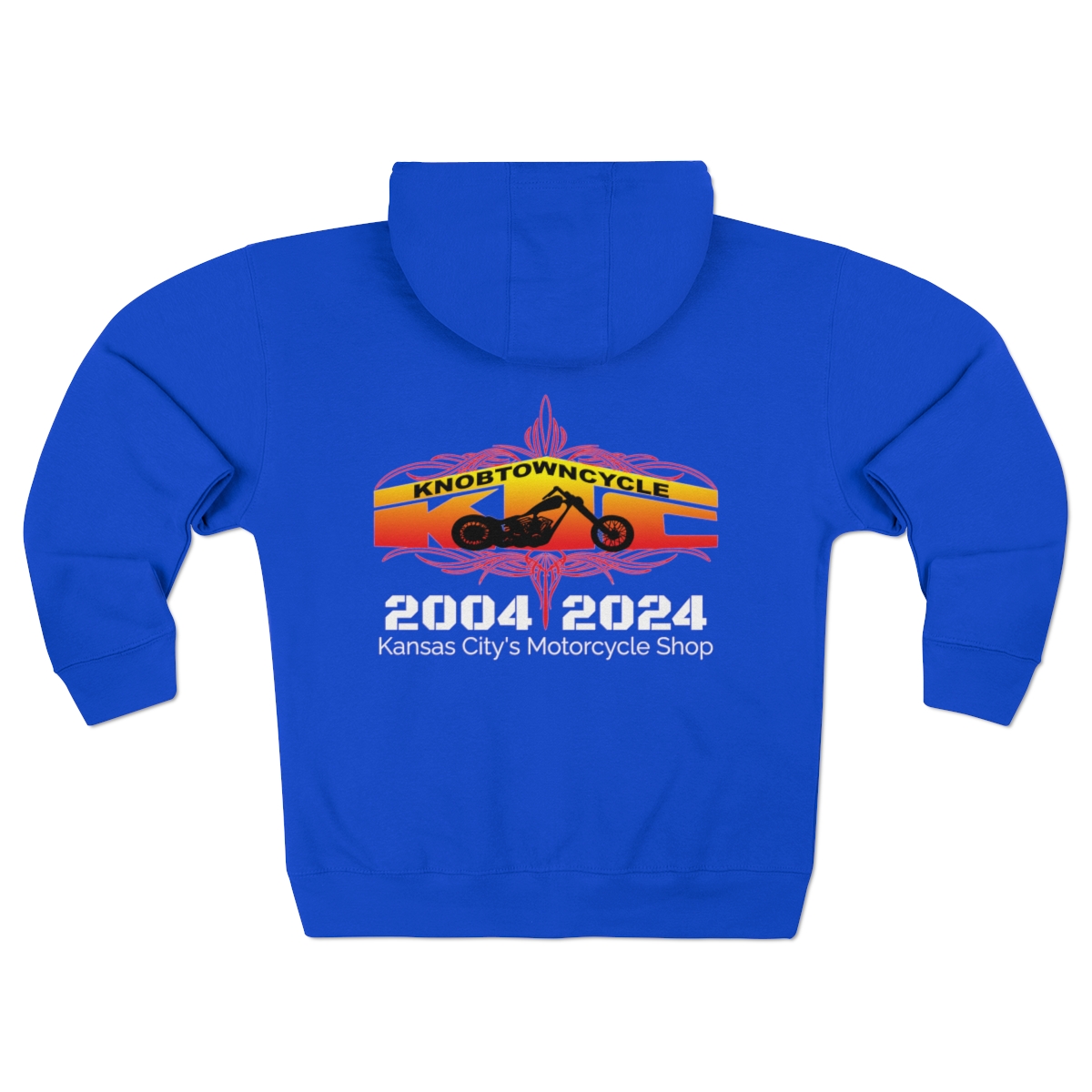 Unisex Royal Blue Zip Hoodie – Comfy & Stylish Hooded Sweatshirt for Men & Women – Available in S, M, L, XL, 2XL – 80%% Cotton, 20%% Polyester – Tear-Away Label – Knobtown Cycle Branded Swag