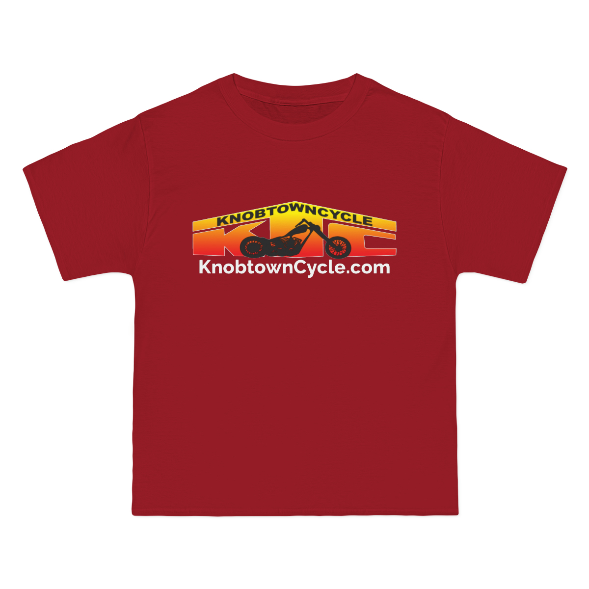 Beefy-T® Short-Sleeve T-Shirt – Deep Red | Personalized Design | 100%% Cotton | Relaxed Fit | Durable | Knobtown Cycle Branded Swag