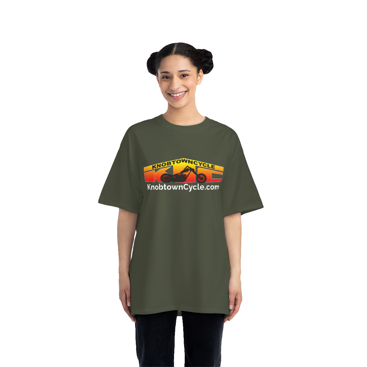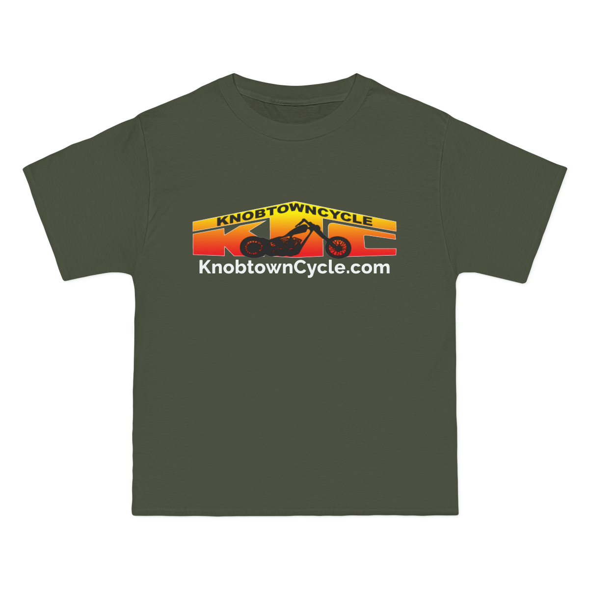 Whether you’re a fan of Knobtown Cycle or simply appreciate high-quality, comfortable clothing, the Beefy-T® Short-Sleeve T-Shirt in Army Green is a must-have addition to your wardrobe. Show off your style and support your favorite brand with this personalized tee.
