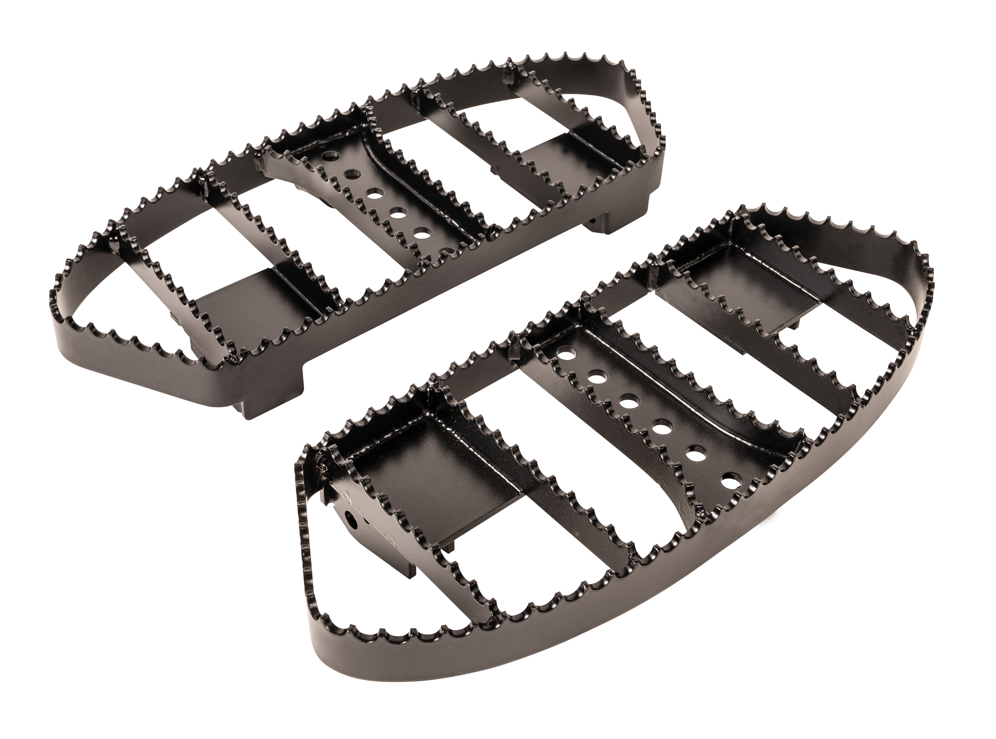 Based off the aesthetic of our original MX-Style pegs, we now offer MX-Style Floorboards for HD Touring models! They are made of steel with just the right amount of serration to keep your feet planted. TIG welded for strength and powder coated Satin Black to blend nicely with your bike. The rider boards bolt right on 1984-2017 FL Touring models, 1984-2015 FLST/FLS and 2012-2017 FLD models. The matching passenger floorboards fit 1993-2017 FLH/T models with stock passenger floorboard mounts. Tig Welded Steel with a Black Powder Coat finish. The rider boards bolt right on 1984-2017 FL Touring models, 1984-2015 FLST/FLS and 2012-2017 FLD models.