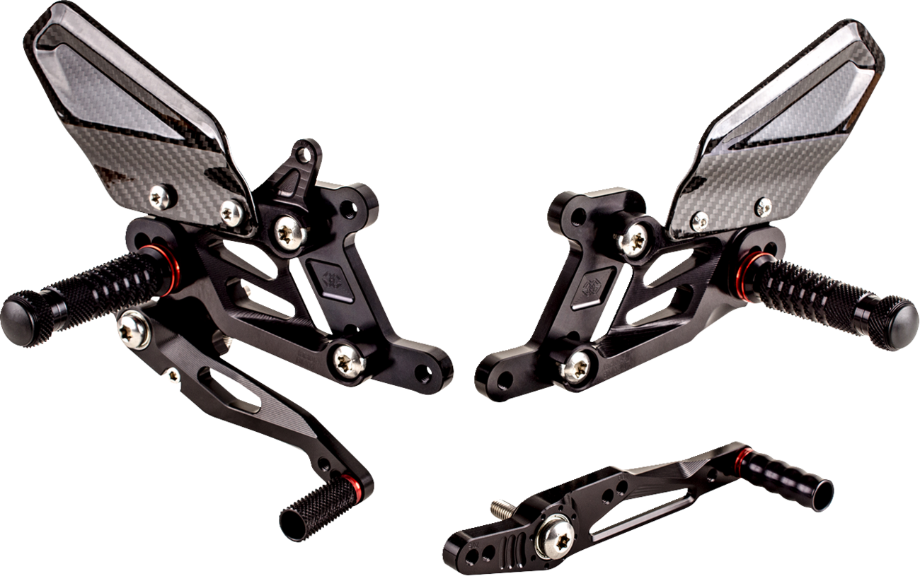 - Brackets offset away from motorcycle to ensure rider’s legs do not make contact with fairing
