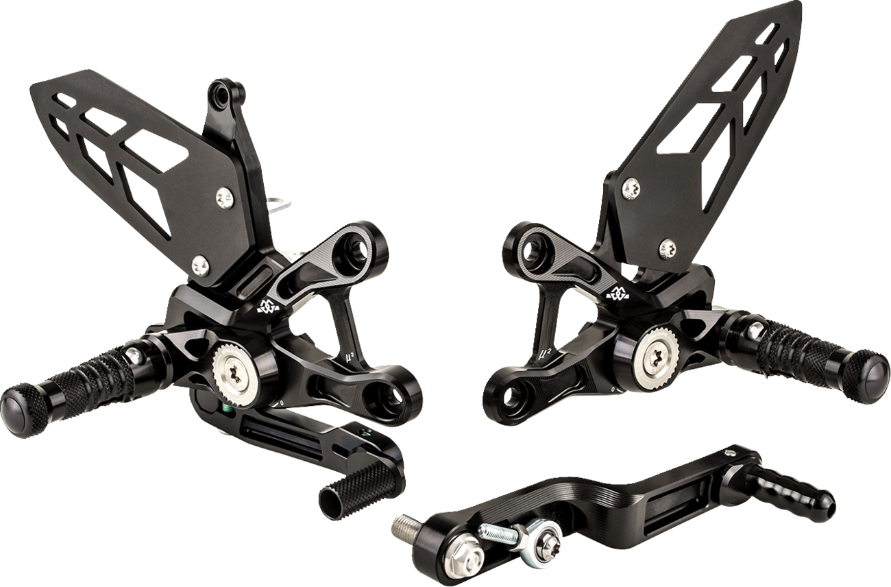 - Include rubber insert footpegs, shift peg and mounting hardware; use stock brake master cylinder