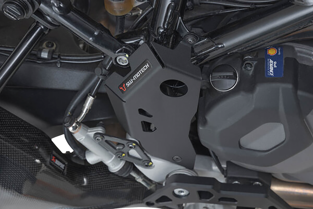 - Stops motorcycle boot from touching the hot exhaust, chain, or swing arm movements