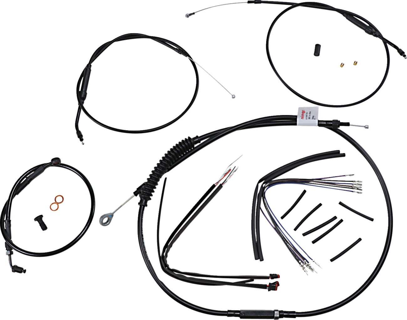 - Includes a bar length specific extended brake line, extended clutch cable and extended wiring for installation