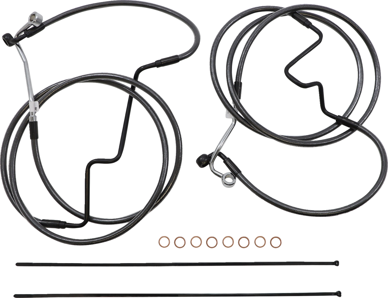- Kit includes throttle and idle cables of throttle-by-wire extensions, clutch cable or hydraulic clutch line, brake lines, copper crush washers, hardware, and any necessary switch wiring of turn signal extension, unless otherwise noted