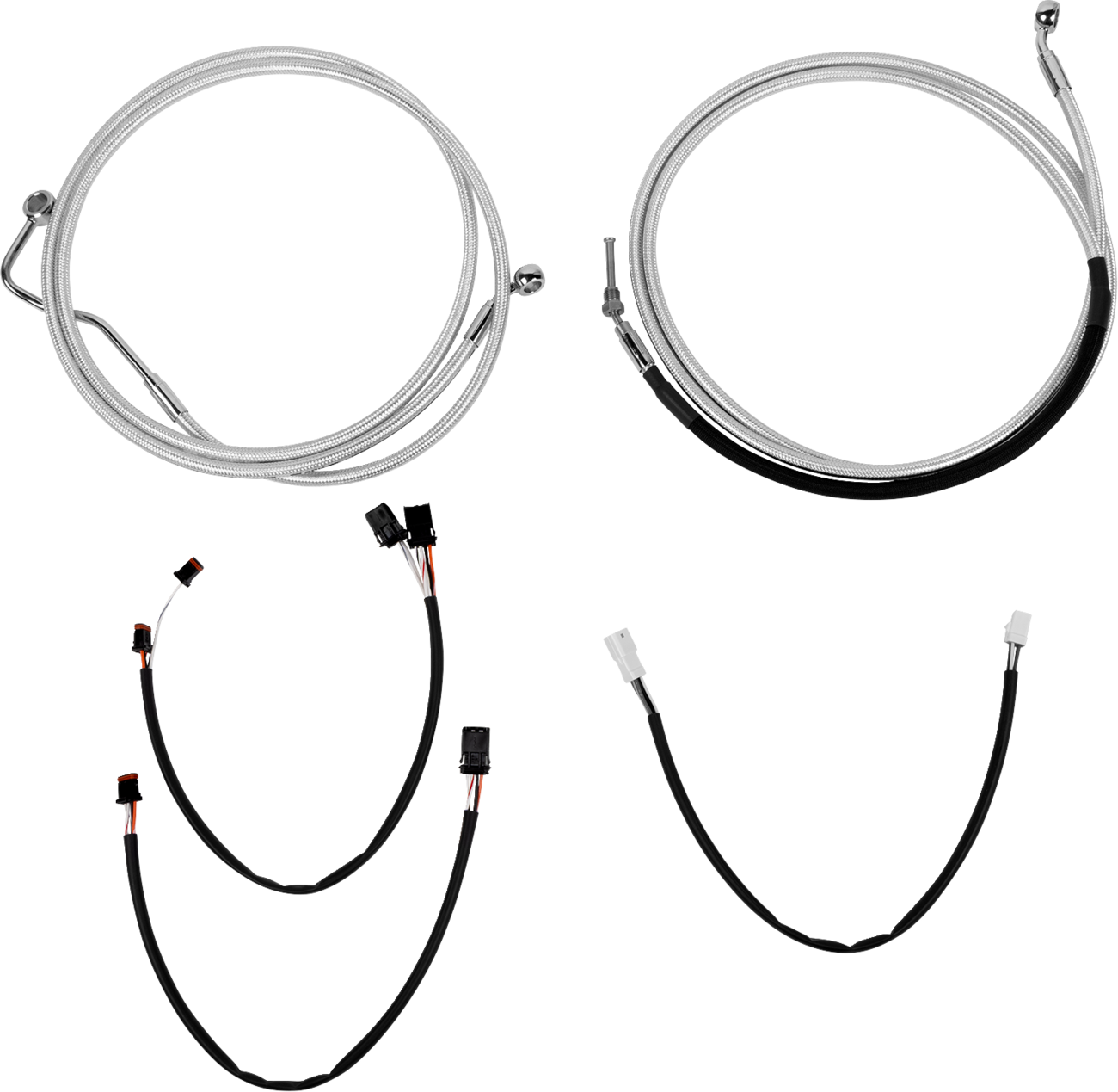 - Kit includes throttle and idle cables of throttle-by-wire extensions, clutch cable or hydraulic clutch line, brake lines, copper crush washers, hardware, and any necessary switch wiring of turn signal extension