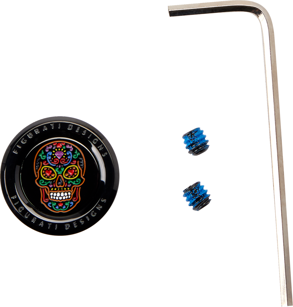 Ride with confidence using the FIGURATI DESIGNS COVER SHIFT SPLINE SUGAR SKULL BLACK from Knobtown Cycle.