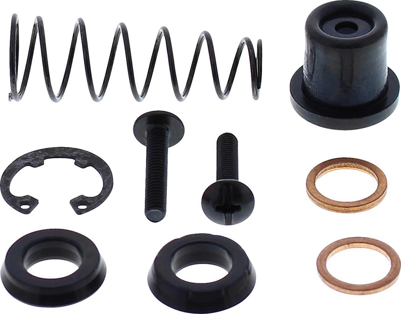 - Kit contains all the components to re-seal leaking master cylinders: copper washers, cup seals, replacement screws (where applicable) and O-rings