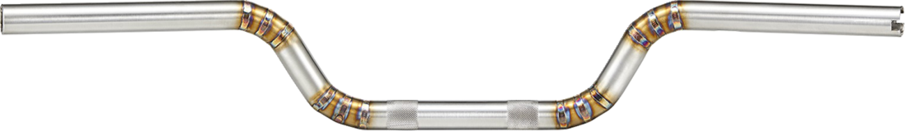 - Handcrafted moto handlebars made from stainless steel tubing that is bent, cut and welded into an aggressive styled bar with a comfortable riding position