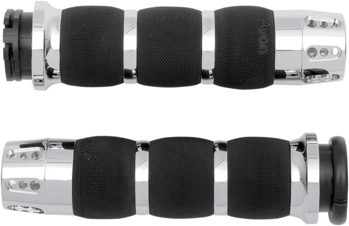 - Feature billet end caps and rings with ergonomic AVON seamless rubber grip technology