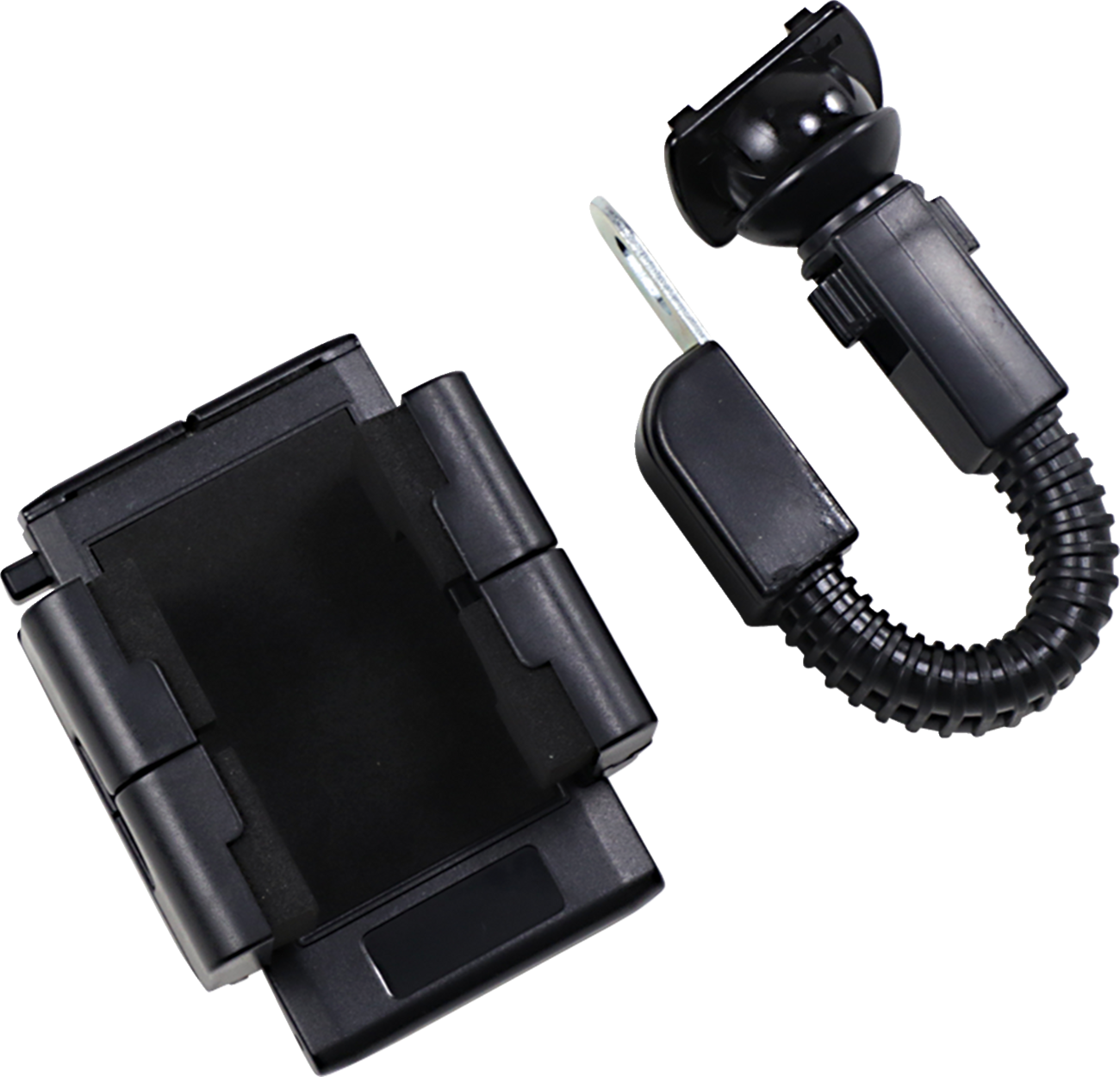 - This “gooseneck” adjustable device holder mounts to most factory mirror studs or handlebar clamp bolts