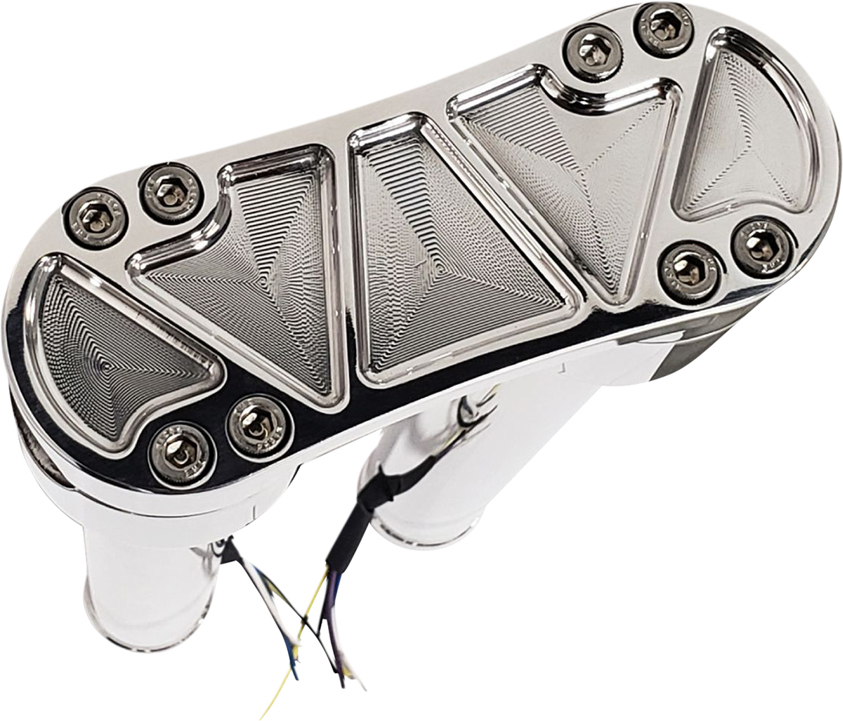 - The uniquely designed 8-bolt common top clamp keep the handle bars secure