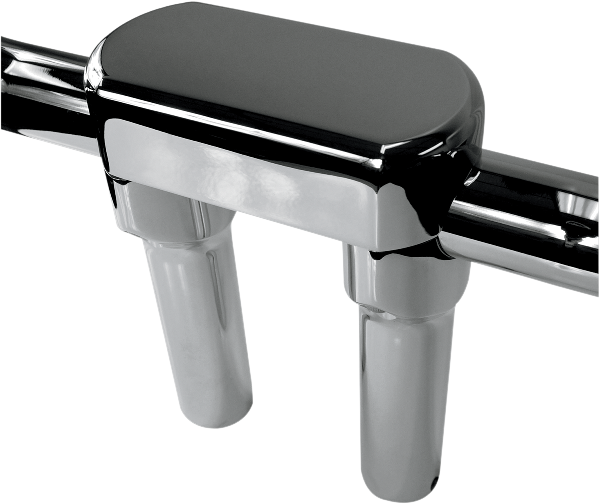 - Sold as a kit of two risers, one-piece top clamp and all necessary hardware