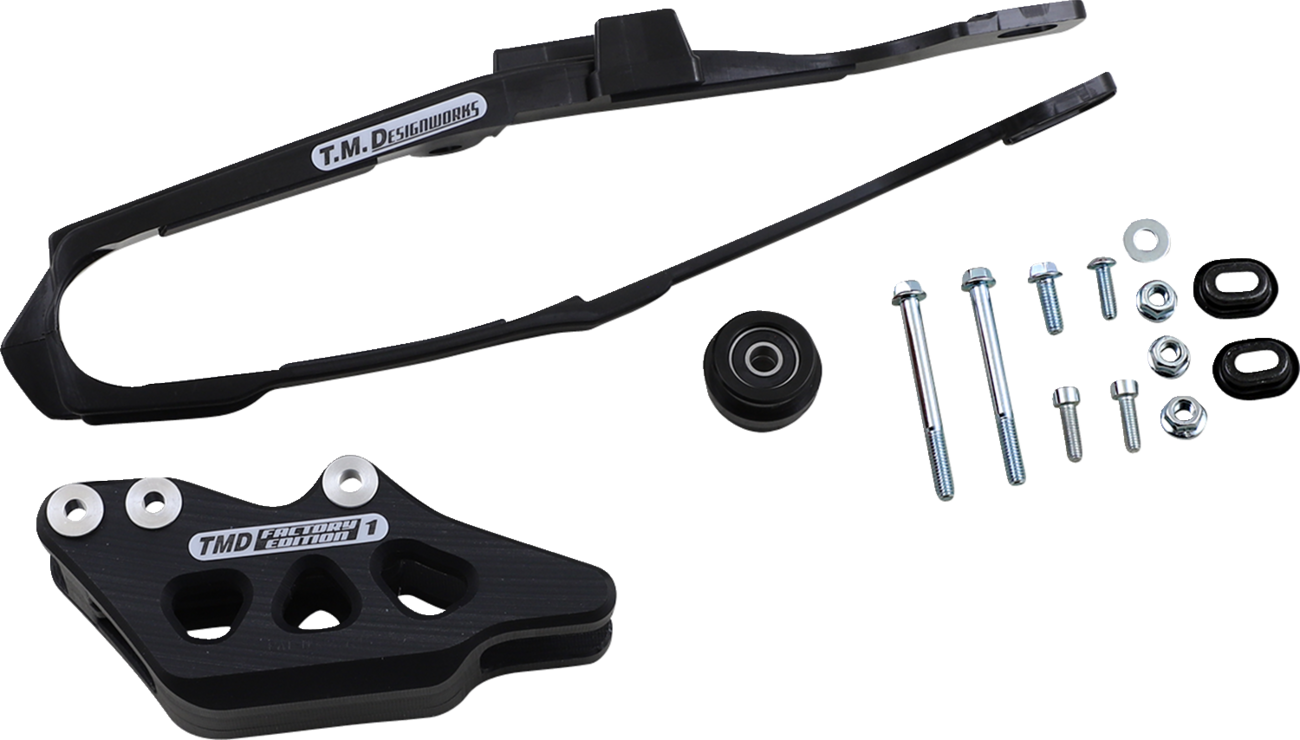 - The kit includes dirt cross chain slider, lower powerlip roller or frame pad, and rear chain guide (either factory edition #1 or #2)
