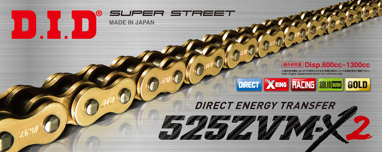 - ZVM-X Series utilizes D.I.D’s patented X-Ring seal and has greater strength than the VX Series and is designed for heavyweight motorcycles with tremendous torque and horsepower