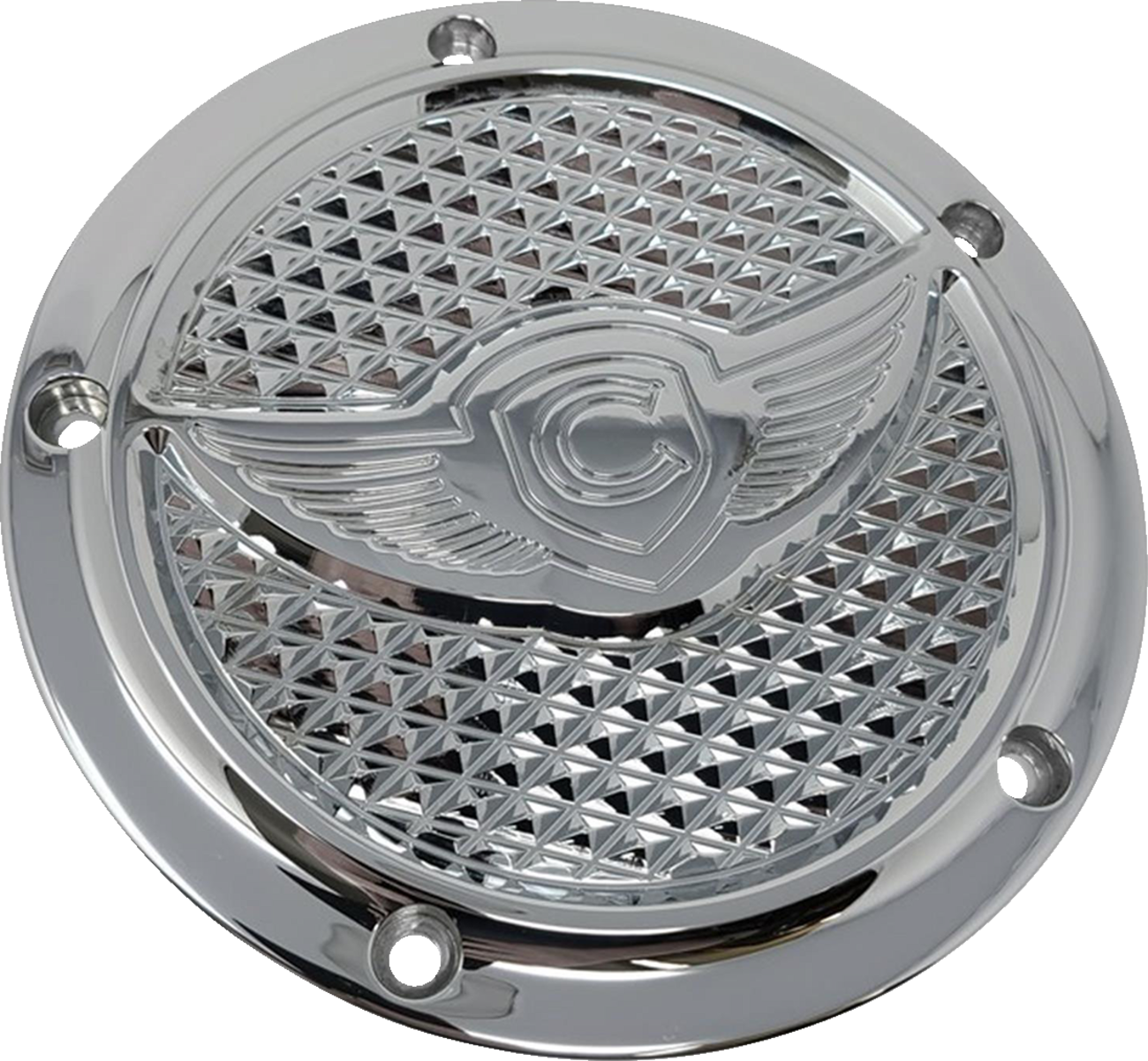 COVINGTONS Derby Cover – Diamondback – 5-Hole – Chrome – Twin Cam