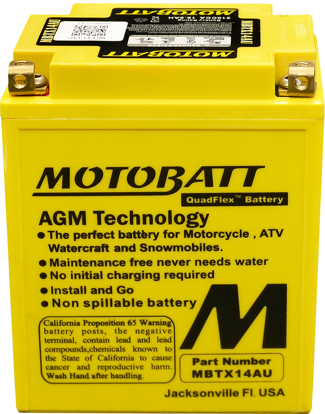 - MotoBatt innovative Quadflex design boasts four terminals, offering unparalleled installation flexibility and compatibility across a wide range of applications.