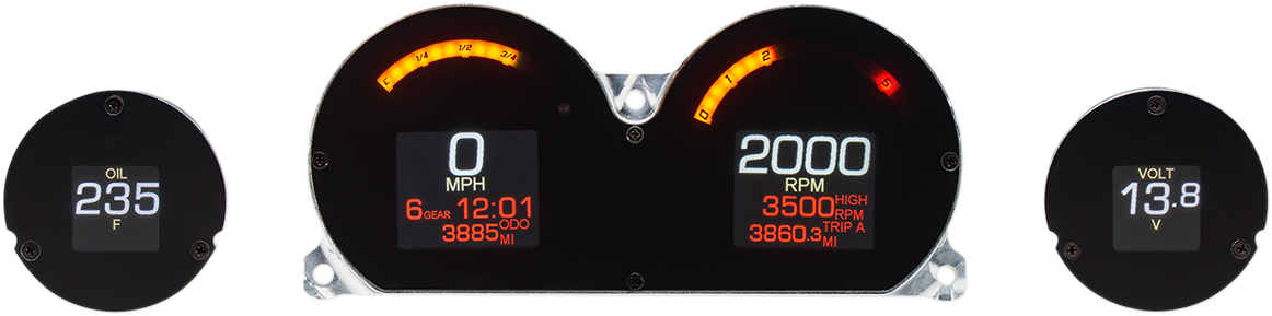 - Gauges include: speedometer, tachometer, odometer, voltmeter and clock