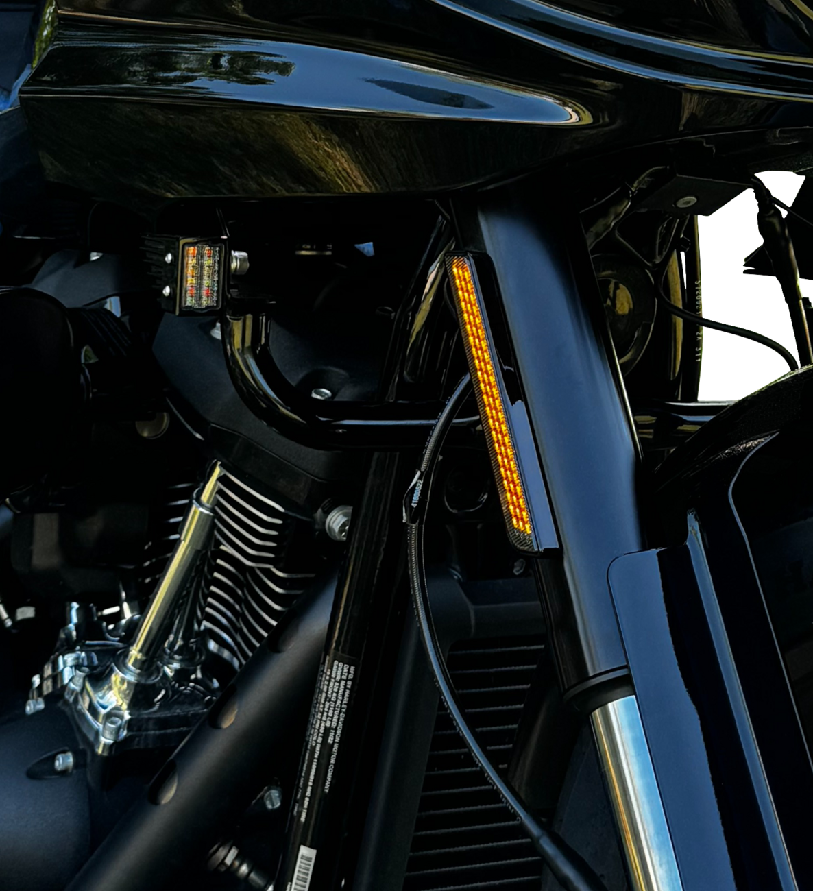 - Upgrade the OEM reflector on the side of the front forks to a dual intensity LED light