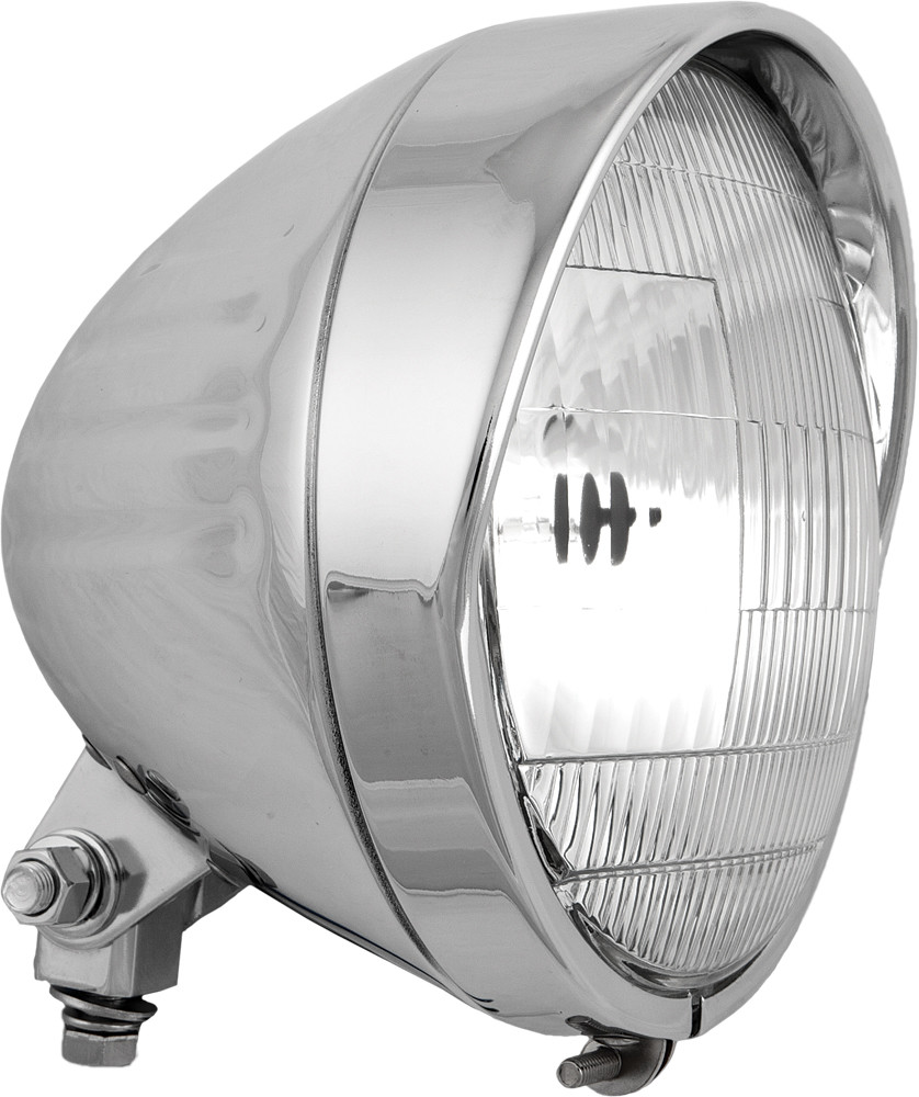 HARDDRIVE 5.75″ HEADLIGHT BOTTOM MOUNT CHROME GROOVED W/ VISOR
