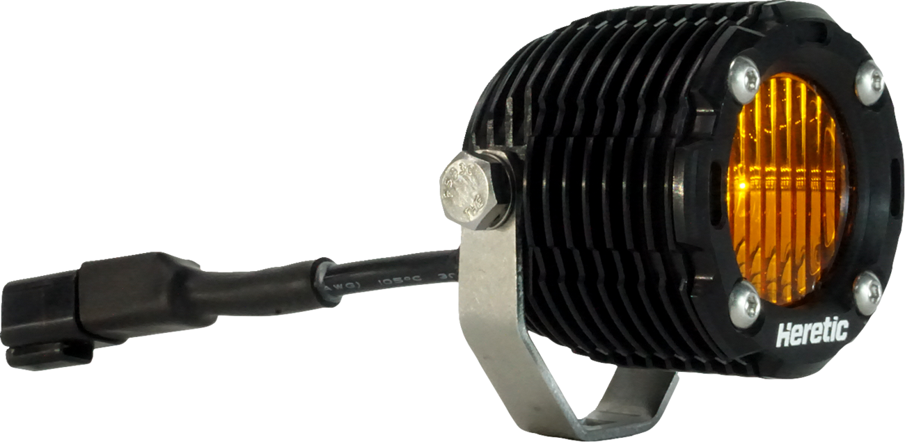 The HERETIC LIGHT SINGLE BA-1R FLOOD AMBER is available now from Knobtown Cycle, your Kansas City motorcycle parts specialists.
