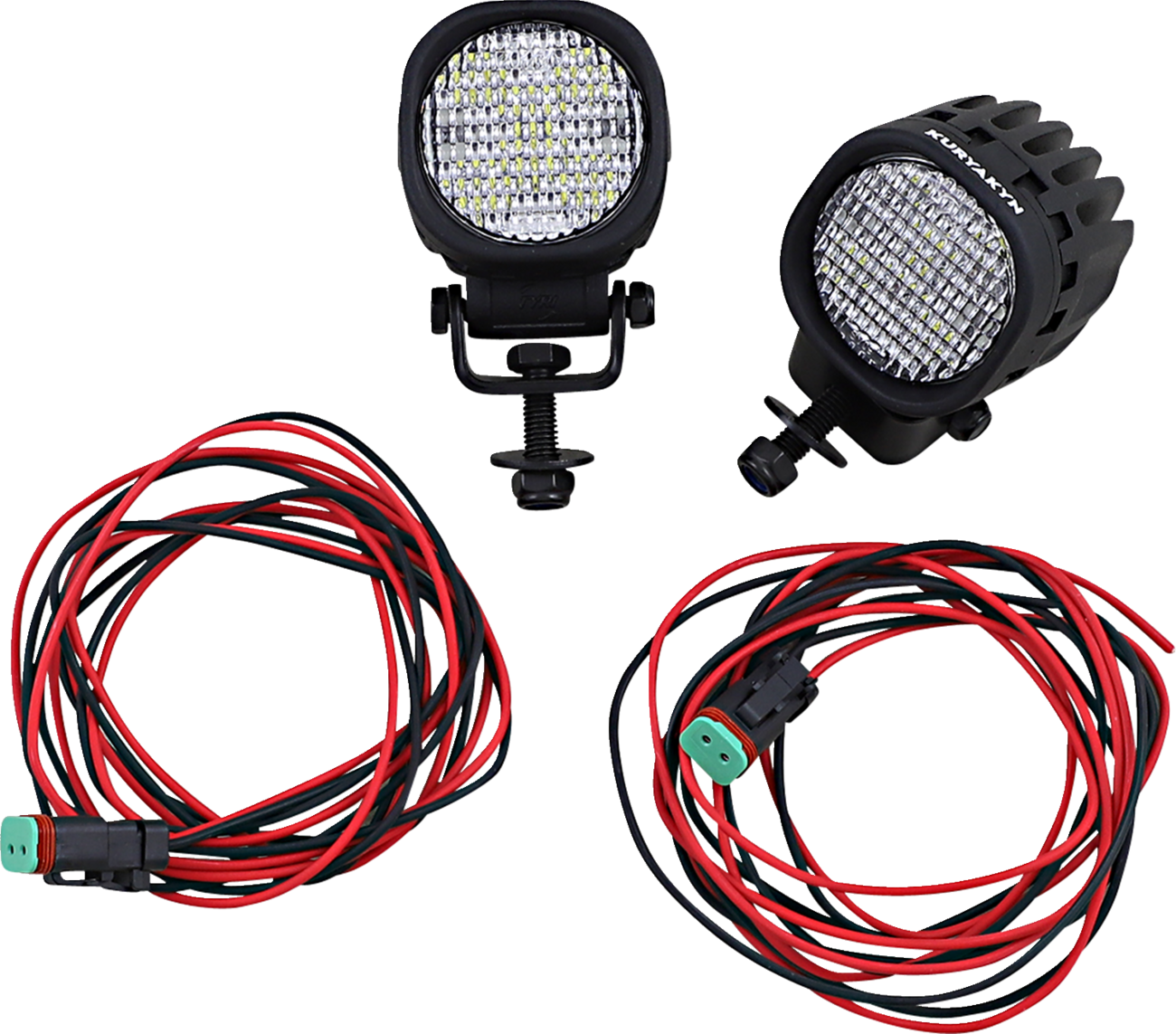 - Kit includes two lamps with sealed connectors and wiring pigtails, and integrated mount brackets with fasteners