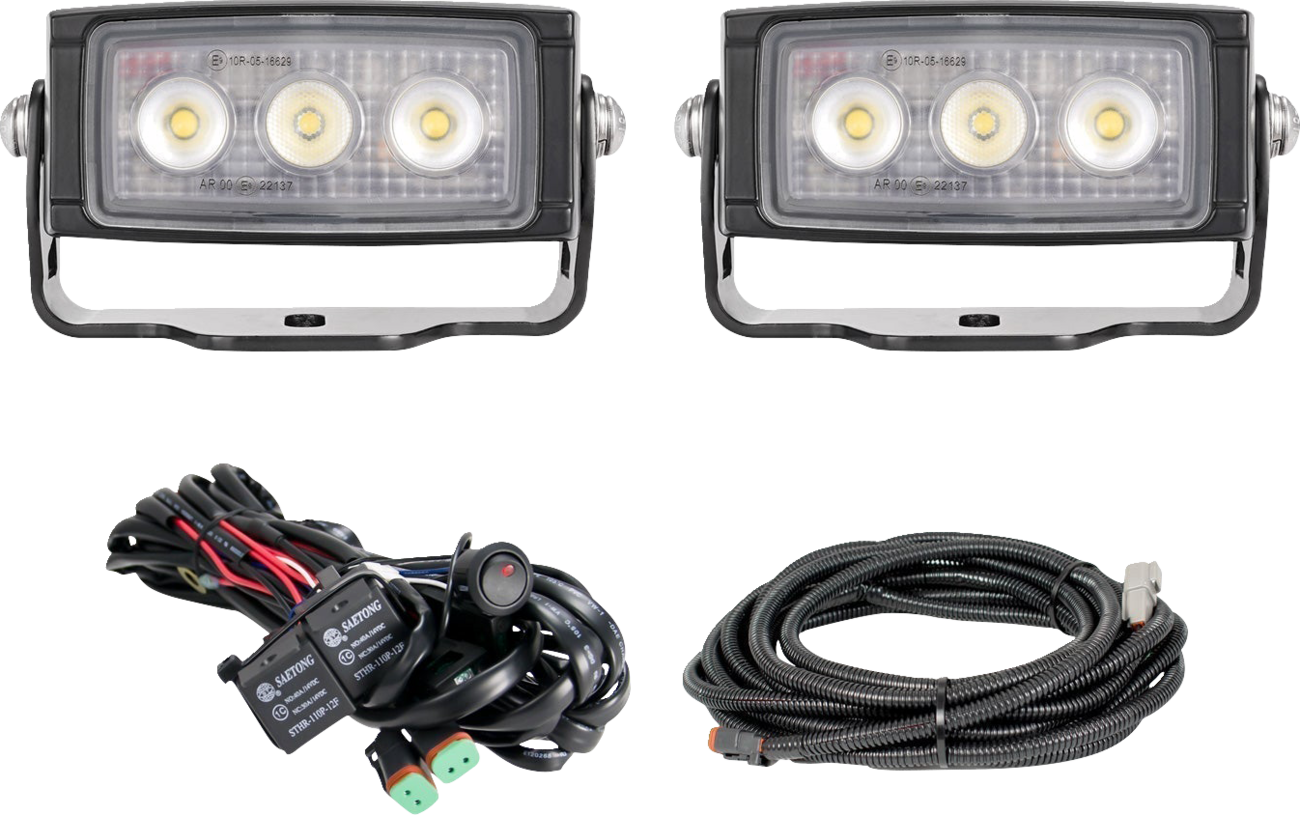 - Mounting brackets and wiring harness included