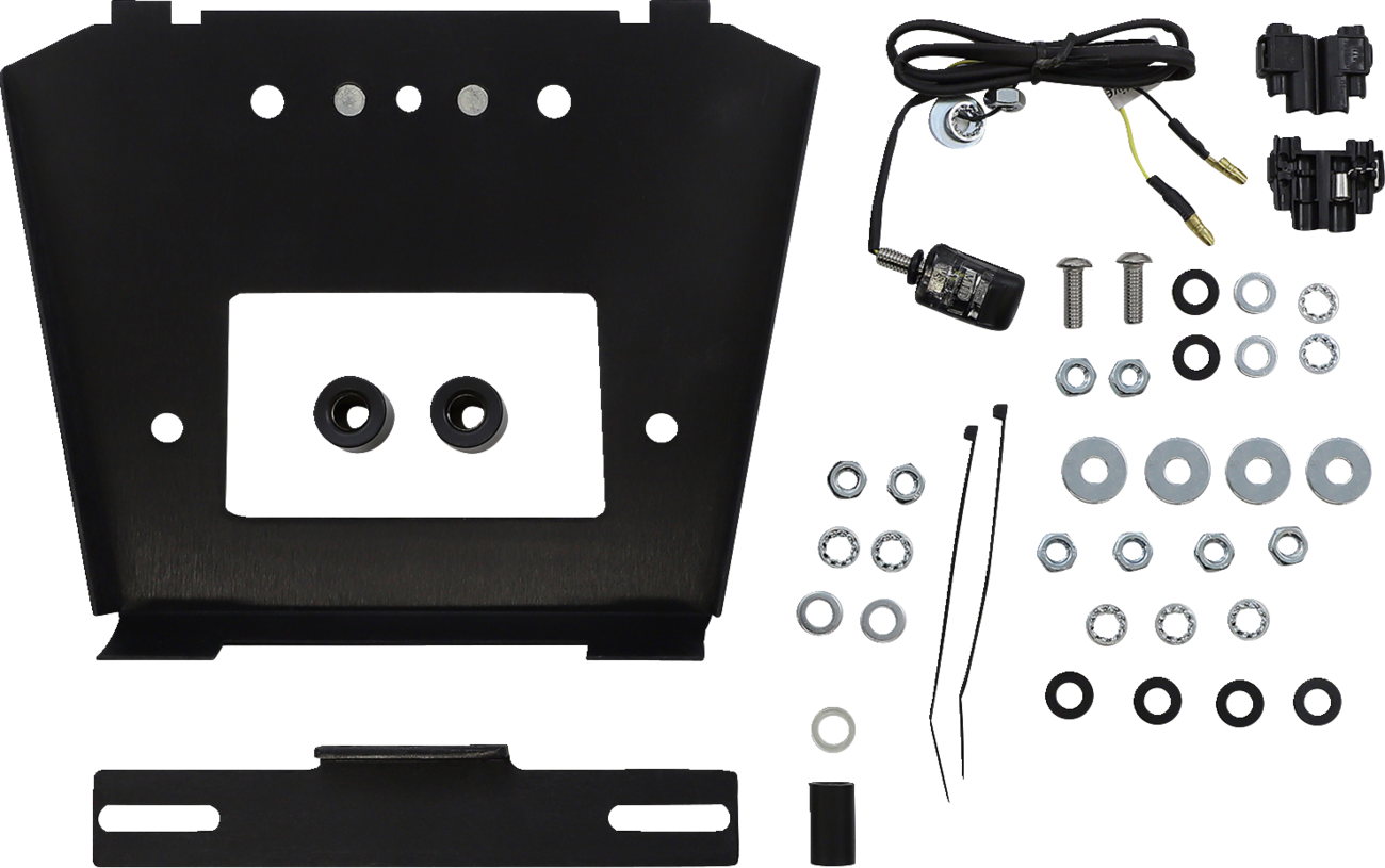 - Aluminum license plate mount and LED license plate light included