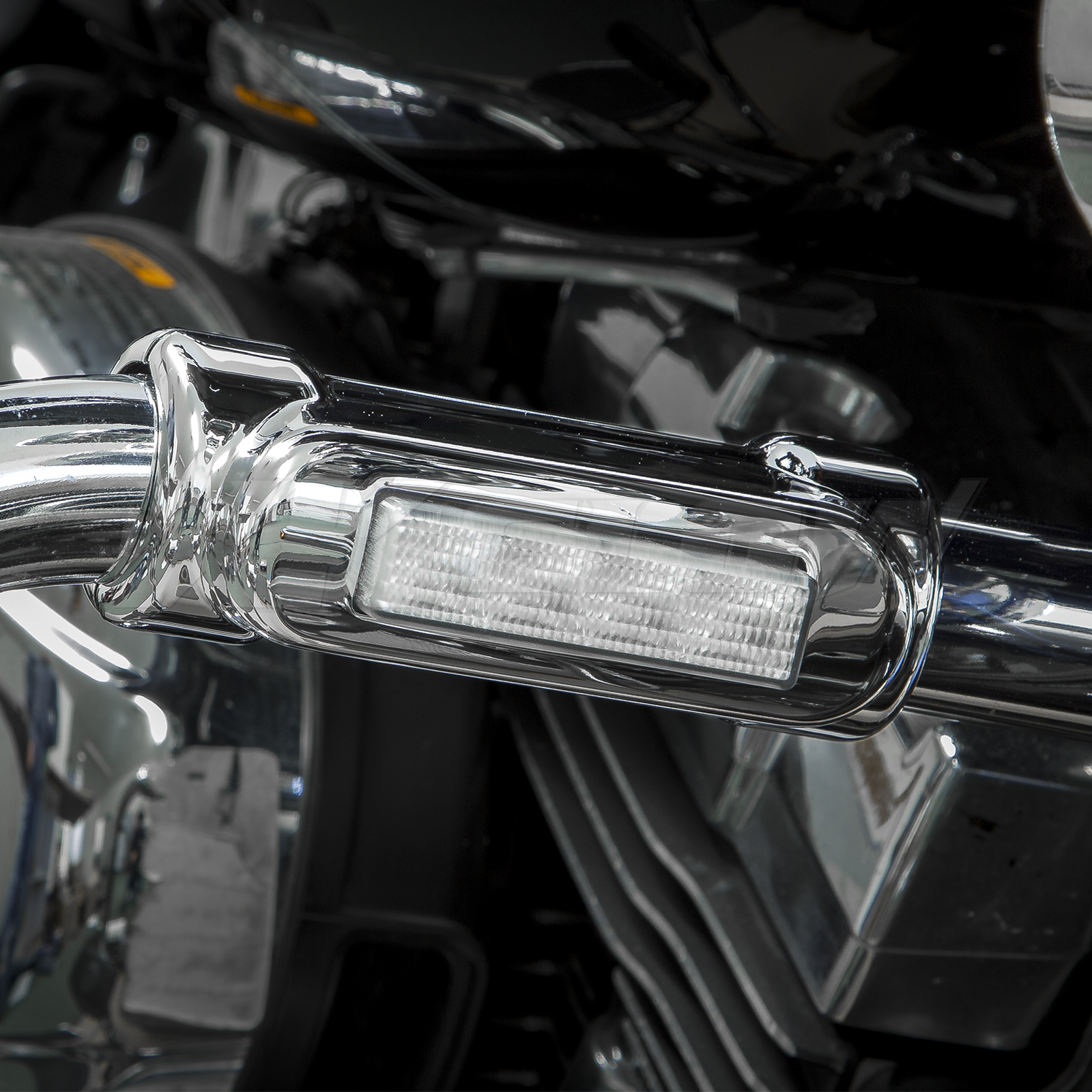 - Switchback function turns off the white driving lights when the turn signal is on for maximum visibility.