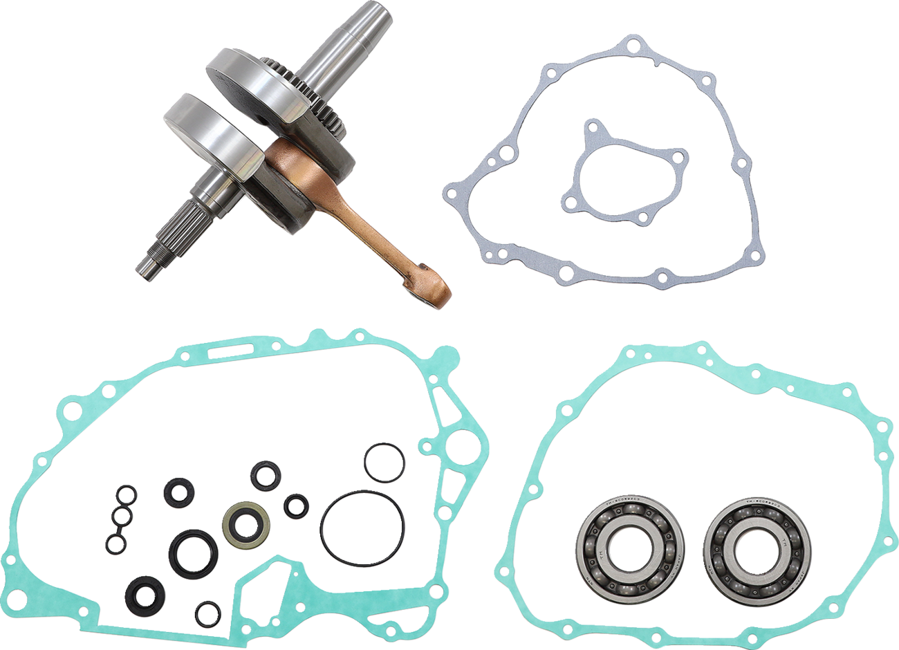 - Kit includes crankshaft assembly, main bearings, and bottom-end gasket kit