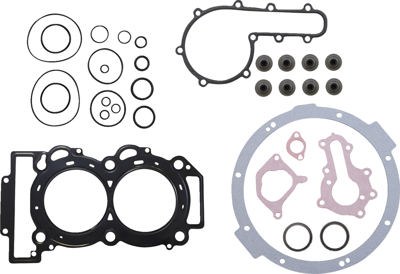 - Set includes all gaskets and o-rings necessary to rebuild the entire engine and transmission; valve seals also included