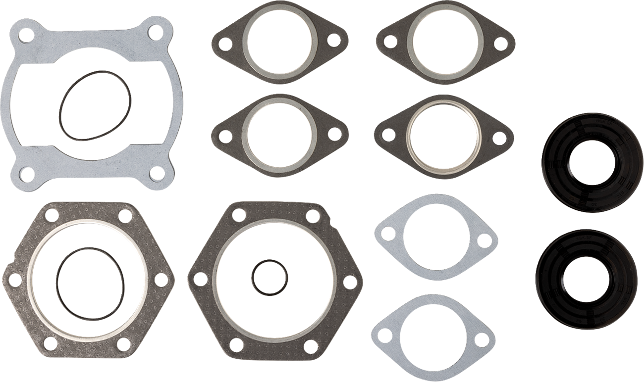 - Includes all head, base, intake, exhaust gaskets and O-rings or oil seals, plus crankshaft end seals and power valve gaskets