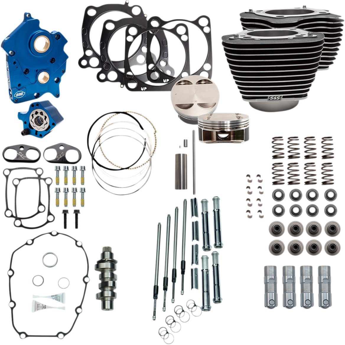 - Big-bore bolt-on kit increases 114″/117″ with 4-1/2″ stroke M-Eight with no case machining required