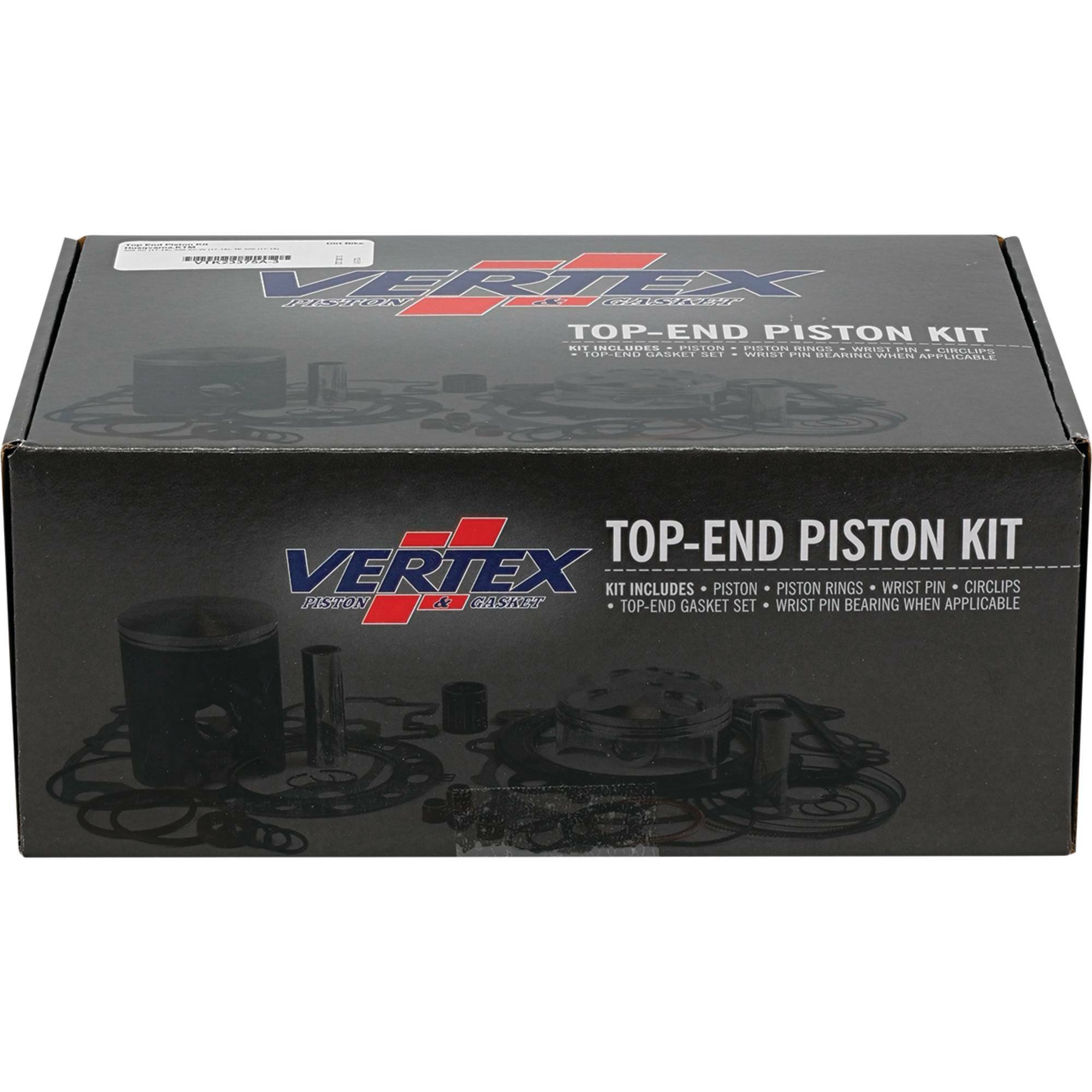 - Top end piston kit includes piston, rings, pins, circlips, top end gaskets, and wrist pin bearing or cam chain where applicable.