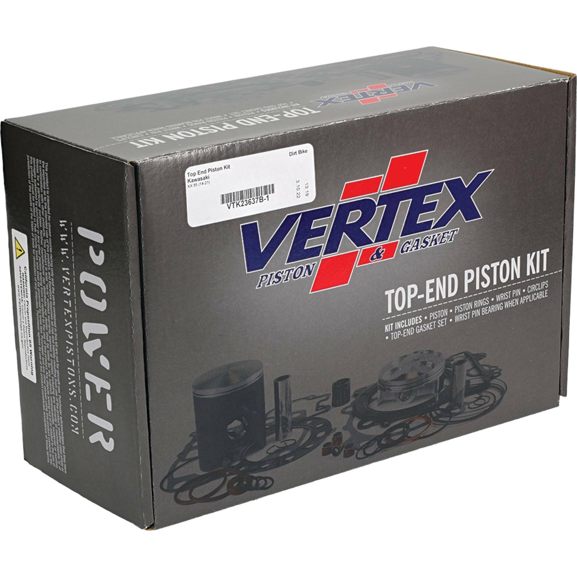 - Top end piston kit includes piston, rings, pins, circlips, top end gaskets, and wrist pin bearing or cam chain where applicable.