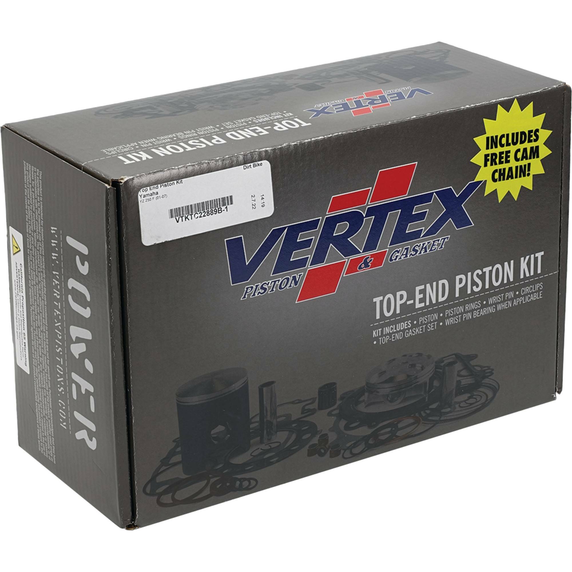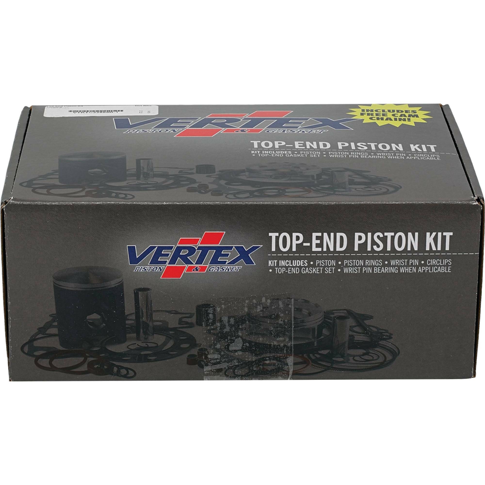 - Top end piston kit includes piston, rings, pins, circlips, top end gaskets, and wrist pin bearing or cam chain where applicable.
