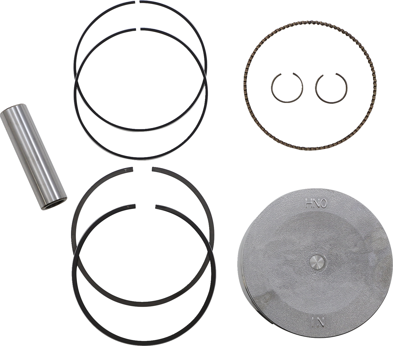 - Kit includes piston, rings, wrist pin and circlips