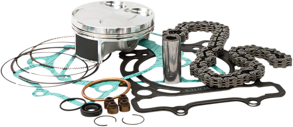 - Top-end piston kit includes piston, rings, pins, circlips, top-end gaskets and cam chain