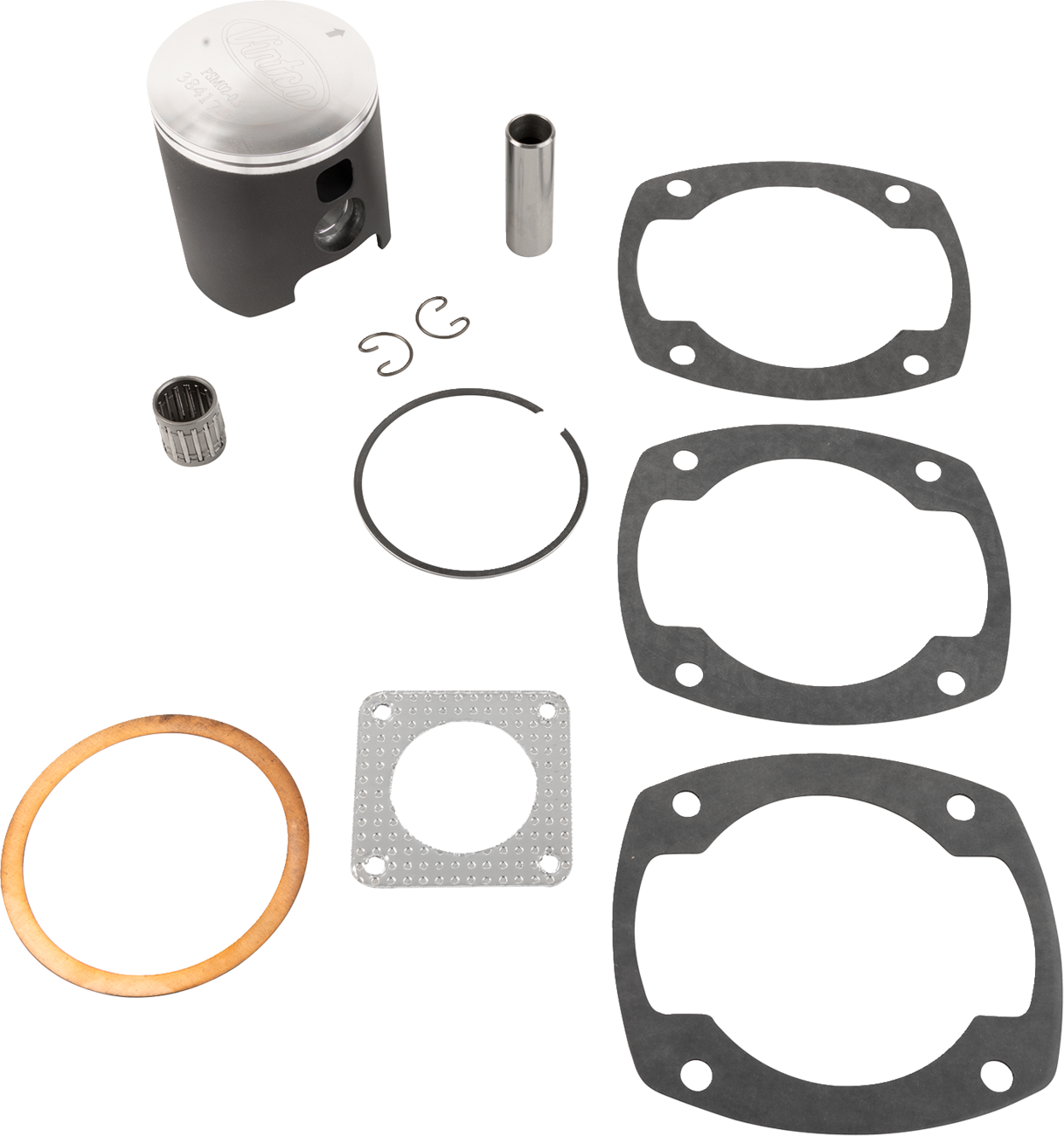 - Kit includes a piston, rings, pin and clips, top end bearing and a full top-end gasket kit (head gasket, base gasket, intake gasket, and exhaust gasket)