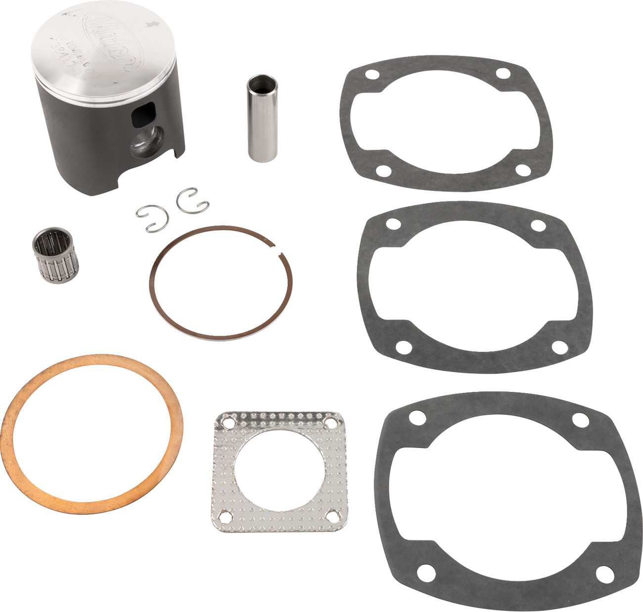 - Kit includes a piston, rings, pin and clips, top end bearing and a full top-end gasket kit (head gasket, base gasket, intake gasket, and exhaust gasket)