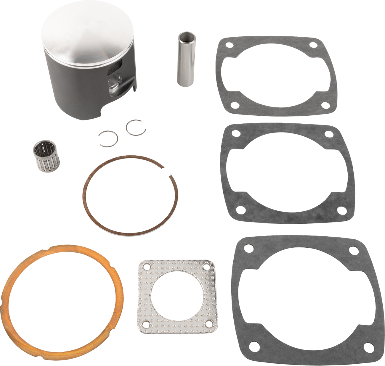 - Kit includes a piston, rings, pin and clips, top end bearing and a full top-end gasket kit (head gasket, base gasket, intake gasket, and exhaust gasket)