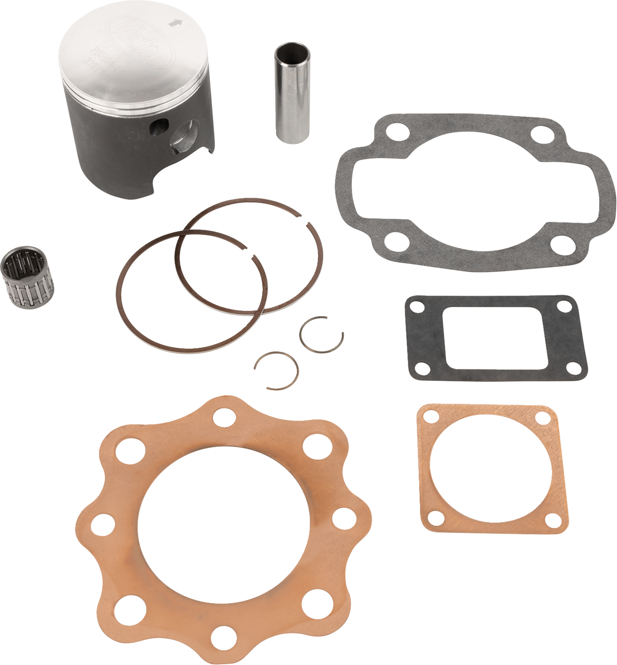 - Kit includes a piston, rings, pin and clips, top end bearing and a full top-end gasket kit (head gasket, base gasket, intake gasket, and exhaust gasket)