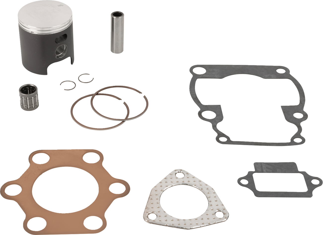 - Kit includes a piston, rings, pin and clips, top end bearing and a full top-end gasket kit (head gasket, base gasket, intake gasket, and exhaust gasket)