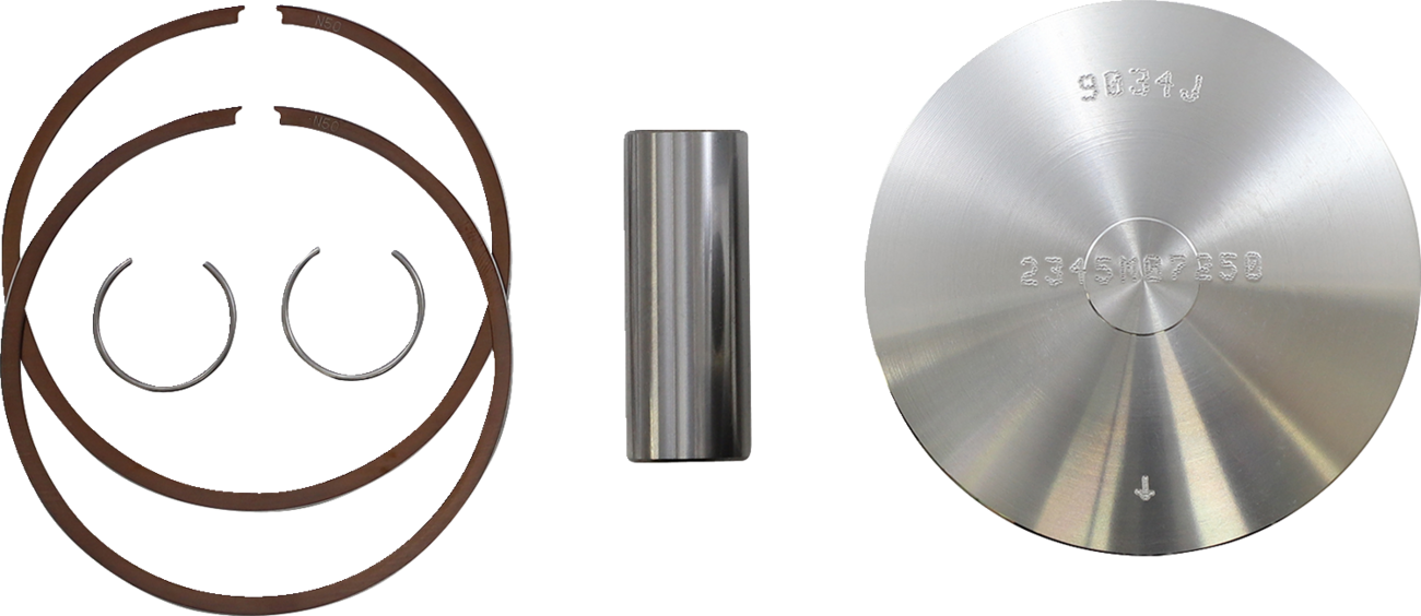 - Kit includes piston, rings, circlips and wrist pin