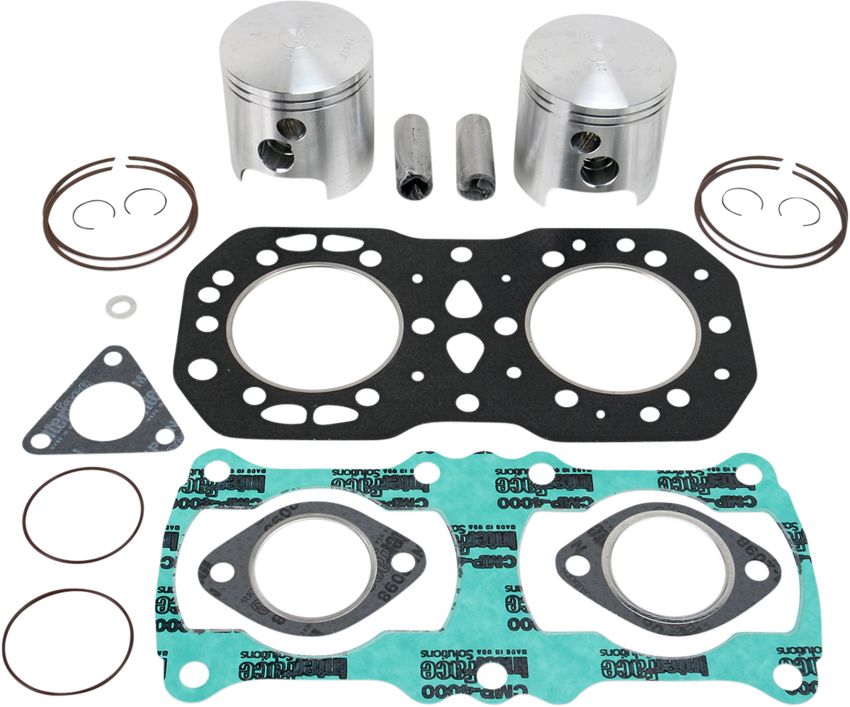 - Kit includes forged pistons, rings, wrist pins, circlips and top end gasket set